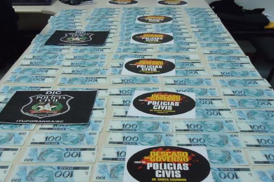 A Polícia Civil apreendeu cento e vinte cédulas falsas de R$ 100 – totalizando R$12mil – na noite desta quarta-feira, em uma Operação da Divisão de Investigação Criminal (DIC) e delegacias de Ituporanga e de Petrolândia. De acordo com a Polícia Civil, a partir de uma investigação de furto, o suspeito, Thiarles Dias, foi revistado e os policiais encontraram duas cédulas aparentemente falsas de R$ 100 com ele em um hotel de Ituporanga. Diante da apreensão, o suspeito acabou confessando que utilizou o dinheiro do furto para adquirir cédulas falsas no Rio Grande do Sul.