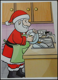 Cartas com ilustrações do Papai Noel ( As fotos que postei anteriormente); cartolinas brancas e verdes; cola branca; fita adesiva; pincel; tesoura com ponta arredondada; tinta guache.