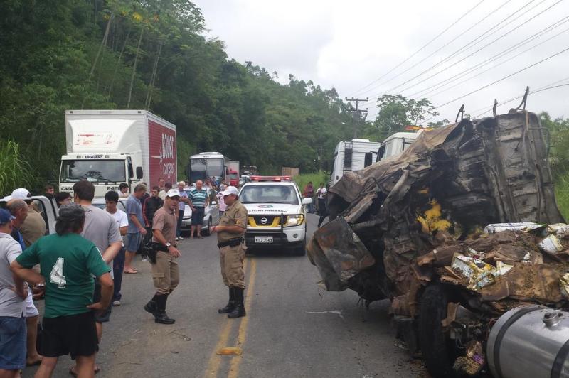 A colisão envolveu um caminhão VW com placas de Chapecó, conduzido por Fraudinei Rufino Pereira, 37 anos e um caminhão Scânia com placas de Blumenau, conduzido por Gilberto Kruger, 26 anos, que morreu no local do acidente. De acordo com informações, um terceiro caminhão, um Mercedez-Benz, também se envolveu no acidente, mas sem gravidades.
